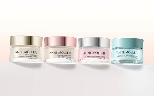 Mit über 25 Jahre Kompetenz in der Hautpflege ist Anne Möller der Experte zur Bekämpfung und Prävention vor innerer und äußerer Hautalterung, mit Produkten für jedes Bedürfnis in allen Lebensabschnitten einer Frau. Dank der innovativen und exklusiven GLOBAL DEFENSE TECHNOLOGYTM garantiert Anne Möller die Abwehr von mehr als 80%* der für die vorzeitige Hautalterung verantwortlichen äußeren Aggressoren, wie Sonnenlicht, blauem Licht von digitalen Bildschirmen und Umweltverschmutzung. Forschung und Wissenschaft sind daher ein großer Bestandteil der Marken-DNA. Alle Produkte werden mit nachgewiesenen Wirksamkeitsergebnissen unterstützt.