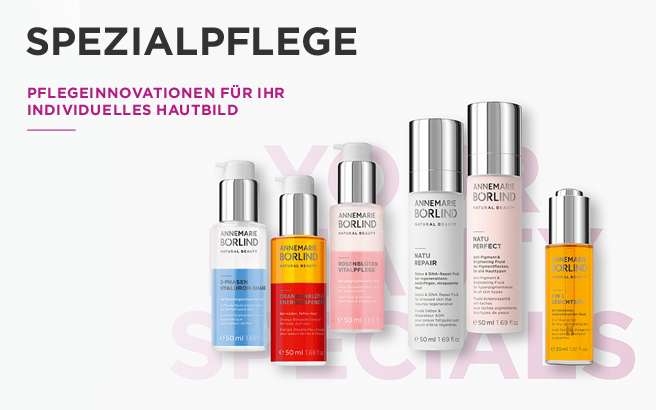 Mit den Zusatzprodukten der SPEZIALPFLEGE können die Tages- und Nachtpflege der ANNEMARIE BÖRLIND Systempflegeserien gezielt ergänzt oder ersetzt werden. Die wirkungsvollen Innovationen bieten intensive Pflegewirkung, zugeschnitten auf den individuellen Hauttyp.