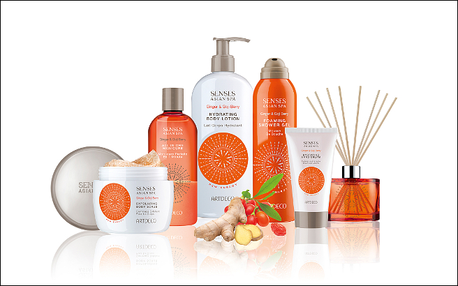 Die orange Pflegelinie New Energy schenkt Ihnen Kraft und Energie für den ganzen Tag. Sie duftet nach Ingwer und Goji-Beere, die belebend und aktivierend wirken.