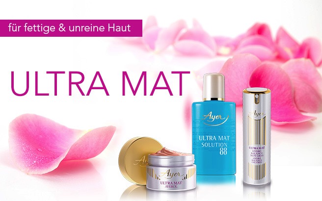 Die Linie Ultra Mat ist die perfekte Problemlösung für die glänzende, großporige Haut mit Neigung zu Mitessern, Pickeln und Pusteln. Auf der Basis talgreduzierender, antiseptischer und beruhigender Spezialwirkstoffe verbessert dieses Pflegeprogramm Ihr Hautbild schon nach kurzer Zeit sichtbar.