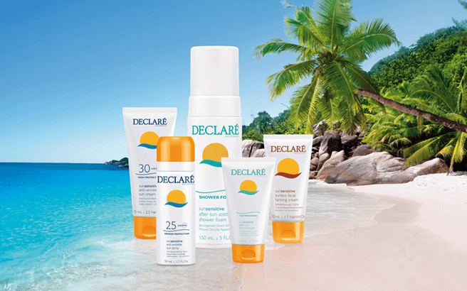 Sonne, Sommer, Urlaubsstimmung! Damit Sie die “schönste Zeit des Jahres” auch mit empfindlicher Haut unbeschwert genießen können, hat DECLARÉ das sunsensitive Konzept entwickelt. Ihre empfindliche Haut reagiert intensiver auf alle Einflüsse von innen und außen und braucht auch an der Sonne ganz spezielle Pflege und besonderen Schutz. DECLARÉ verbindet mit den SUN Produkten modernste Schutztechnologien mit anspruchsvoller Pflege für die besonderen Bedürfnisse empfindlicher Haut.