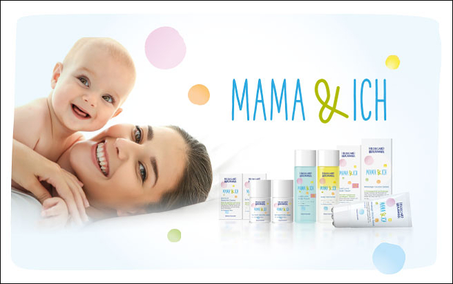 Die neue Pflegelinie MAMA & ICH geht einfühlsam auf die Haut- und Wohlfühlbedürfnisse von Mutter und Kind ein. Die Pflegepräparate begleiten Sie sanft durch die Schwangerschaft und bereiten Ihre Haut auf das größte Wunder der Natur vor. Nach der Geburt helfen die Pflegeprodukte der Haut, wieder in Topform zu kommen. Freuen Sie sich auf ein neues ganzheitliches Hautpflegekonzept für Schwangerschaft, Stillzeit, junge Mutter, Baby und Kind. Mit unterstützender Allergieprävention. Bei der Produktentwicklung wurde konsequent die spezielle Situation berücksichtigt, dass Mutter und Kind eine sensitive Pflegeeinheit bilden. Alle Pflegeprodukte der Mutter erreichen durch den intensiven Körperkontakt auch das Baby.