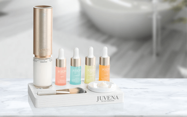 Einfach perfekt, die neue Pflegelinie von Juvena zum Mixen und Kreieren Ihrer ganz persönlichen, hochwirksamen Luxuspflege für ein optimales Ergebnis – abgestimmt auf jedes Bedürfnis und jeden Moment. Zartes Global Anti-Age Cream-Fluid und 4 intensive Konzentrate lassen Hautpflege zu einem neuen, ganz individuellen Erlebnis werden. Modernstes Anti-Aging für höchste Ansprüche. Mit Skinsation können Sie Ihre Haut für jeden Anlass und für jeden Anspruch individuell pflegen und sie exakt mit jenen Wirkstoffen verwöhnen, die sie für ein jugendlich frisches, herrlich gepflegtes Aussehen braucht.