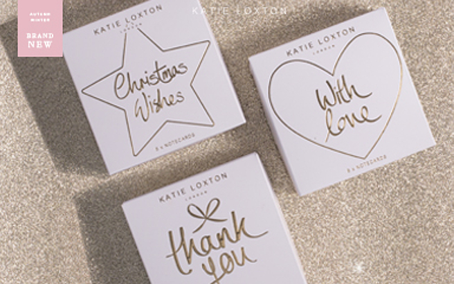 Stilvoll und elegant. Mit den schönen Grußkarten von Katie Loxton lassen sich Gefühle schenken - in glitzerndem, goldenen Design mit goldenem Logo Aufkleber.