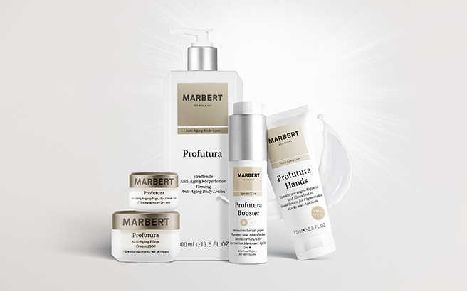 Seit Jahrzehnten erforscht Marbert die Ursachen der Hautalterung und entdeckte dabei die erste echte Hilfe gegen Falten: Profutura. Eine Creme aus der Anti-Aging Care Pflegelinie, die Ihren Teint spürbar erholter und jünger aussehen lässt, Fältchen und Falten reduziert und neuer Faltenbildung vorbeugt. Mit dem Anti-A.G.E. Complex wirkt Profutura auf verschiedenen Ebenen gegen Hautalterung: Sie regeneriert die Haut und spendet ausreichend Energie, Feuchtigkeit und Schutz. Die Vitamine A und E werden optimal in die tiefere Hautstruktur transportiert und aktivieren den Zellstoffwechsel. Ausgesuchte Inhaltsstoffe verbessern die Lipidstruktur. Und durch die Stärkung der oberen Hautschicht werden Sie zusätzlich gegen die Zeichen der Zeit geschützt.