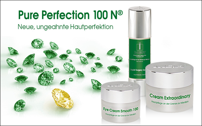 Pure Perfection 100 N® – eine neu definierte außergewöhnlich effiziente Anti-Ageing Pflege, die alle dermalen und epidermalen Zellfunktionen aktiviert. Sie schöpft die besten derzeit verfügbaren Wirkmechanismen aus. Die multiplen ineinandergreifenden Wirkmechanismen garantieren bei unterschiedlichen Hauttypen in höchst unterschiedlichen Lebensphasen immer dieselben, optimalen Resultate. Ergänzt werden Face Cream Smooth 100, Cream Extraordinary, Cream Mask Smooth 100, Eyecare Smoothing Gelmask, Cross Lift Serum Ultrapeptide und Eye Cream Smooth 100 durch Liquid Surgery Serum®, einem perfect abgestimmten epidermalen Pflegeserum mit intensiver Wirkstoffkombination, das der Haut trotz optimaler Pflege zusätzlichen Energieschub gibt, um das Pflegeresultat weiter zu perfektionieren.
