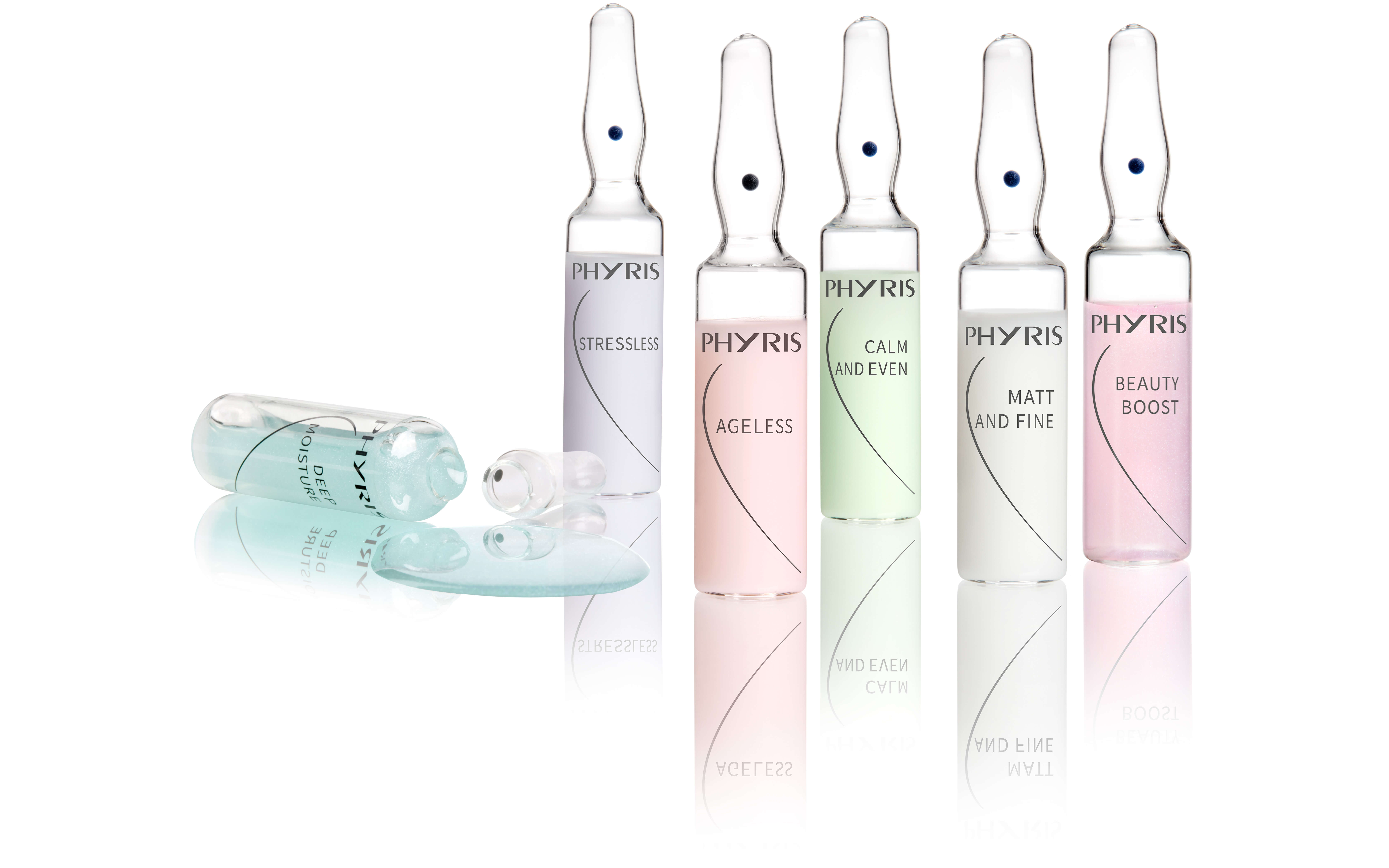 Das Geheimnis schöner Haut ist nur eine Essenz entfernt, zielgenau, unmittelbar. Die kleinen Kostbarkeiten versprechen große Wirkung. Sichtbar und spürbar. Verwöhnen Sie sich selbst mit den einzigartigen Ampullen von PHYRIS.