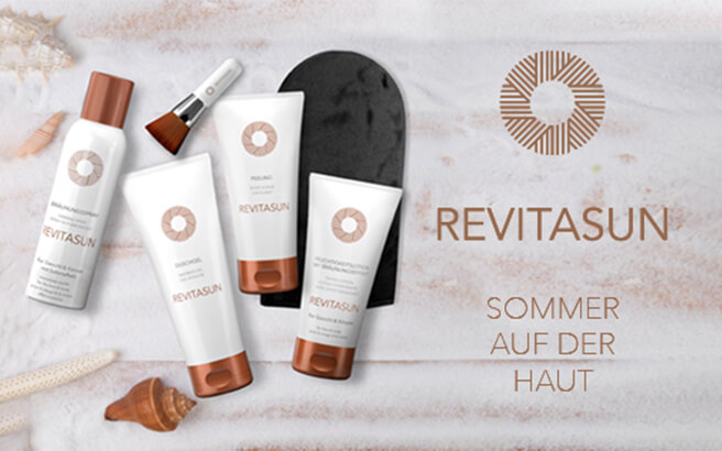 Summerfeeling, das ganze Jahr über mit den Bräunungs- und Pflegeprodukten von REVITASUN. In nur 30 Sekunden verleiht das Bräunungsspray mit den dazu passenden Applikatoren eine natürlich aussehende und ebenmäßige Bräune. Die Pflegeprodukte in der Serie unterstützen den Bräunungsprozess zusätzlich für ein optimales Ergebnis.
